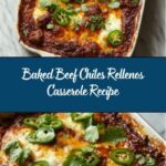 This Baked Beef Chiles Rellenos Casserole combines tender roasted poblano peppers stuffed with a flavorful ground beef mixture, topped with a creamy cheese custard, and baked to golden perfection. It’s a comforting and hearty dish perfect for family dinners and showcases a classic Mexican-inspired flavor with a convenient casserole twist.