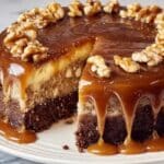 - Layer Batter and Caramel: Pour half of the batter into the prepared baking pan. Drizzle half of the caramel sauce evenly over the batter. Pour the remaining batter on top and then drizzle the remaining caramel sauce over the surface for a rich, swirled effect.