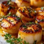 Return the scallops to the skillet and spoon the luscious brown butter sauce over them. Let the scallops soak up these deep flavors for another minute, being careful not to overcook. This final touch seals in the buttery, garlicky, thyme-infused goodness, taking the dish to the next level.