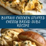 These Buffalo Chicken Stuffed Cheesy Bread Subs are a delicious and hearty meal combining spicy buffalo chicken, creamy cheese, and soft hoagie rolls baked to golden perfection. Perfect for a game day snack or a satisfying dinner, these subs offer a delightful blend of flavors and textures.