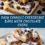 These Cannoli Cheesecake Bars combine the creamy richness of traditional cannoli filling with the convenience of a cheesecake bar. Featuring a buttery graham cracker crust topped with a luscious blend of ricotta and cream cheese, sweetened and flavored with vanilla and a hint of orange zest, these bars are studded with mini chocolate chips for delightful bursts of chocolate in every bite. Perfect for dessert lovers seeking an easy-to-make, crowd-pleasing treat.