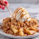 For an elevated presentation, try serving individual portions in small ramekins. Top each with a scoop of vanilla ice cream and a drizzle of caramel, then garnish with a sprig of fresh mint for a pop of color. You can also transform it into a parfait by layering crumble pieces with whipped cream and chopped apples in glass cups.
