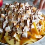 This salad does not freeze well because the fresh apples and whipped topping lose their texture. It’s best to enjoy the Caramel Apple Snickers Salad Recipe fresh for optimal taste and texture.
