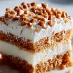 Spread the cream cheese and whipped topping mixture evenly over the cooled cake. You want every square to get a generous layer of this dreamy frosting because it’s where the magic truly shines in the Carrot Poke Cake Recipe.