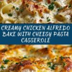 This Cheese Chicken Alfredo Bake is a creamy, cheesy pasta casserole featuring tender chicken, a rich Alfredo sauce made with Parmesan and mozzarella, and a crunchy breadcrumb topping. Perfect for an easy weeknight dinner, this comforting American main course is baked to golden perfection, delivering a hearty, delicious meal that the whole family will love.