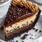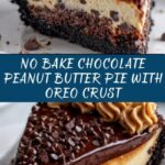 This Chocolate Peanut Butter Temptation Pie is a rich and creamy no-bake dessert featuring a crunchy Oreo cookie crust, a smooth and fluffy peanut butter cream cheese filling, and a glossy chocolate ganache topping. Perfect for holidays or special occasions, this pie offers a decadent combination of chocolate and peanut butter flavors with optional garnishes of chopped peanuts or mini chocolate chips.