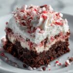 This Chocolate Peppermint Lasagna is a festive, no-bake layered dessert perfect for the holidays. It features a crunchy chocolate cookie crust, a creamy peppermint-flavored cream cheese layer, a rich chocolate pudding filling, and a fluffy whipped topping garnished with crushed candy canes and chocolate shavings. The dessert is chilled to set, making it refreshing and indulgent, ideal for serving a crowd.