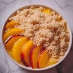 2. Cook Peach Mixture: In a saucepan over medium heat, combine sliced peaches, 1/2 cup granulated sugar, brown sugar, and optional lemon juice. Cook for 5 to 7 minutes until the peaches soften and release syrup.