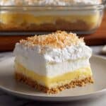 Coconut Cream Lush is a decadent, no-bake layered dessert featuring a buttery graham cracker crust, creamy layers of cream cheese and whipped topping, and a luscious coconut and vanilla pudding mixture, topped with toasted shredded coconut. Perfectly chilled to set, this dessert offers a dreamy tropical flavor profile that’s light, fluffy, and irresistibly creamy.
