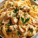 Cowboy Butter Chicken Linguine is a quick and flavorful pasta dish featuring tender chicken breasts cooked in a skillet, tossed with linguine and rich, savory Cowboy Butter, finished with Parmesan cheese and fresh parsley. It’s perfect for a satisfying weeknight dinner in just 25 minutes.
