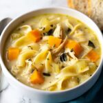 Absolutely! Leftover turkey is perfect and adds great flavor and texture. Just cube it up and toss it in—this soup is a fantastic way to make the most out of your turkey leftovers.