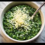 Creamed Spinach is a rich and velvety side dish made with fresh spinach leaves cooked in a buttery, garlicky roux thickened with flour and milk, then finished with a touch of nutmeg and Parmesan cheese for extra flavor. Perfectly tender and creamy, this classic American recipe is easy to prepare on the stovetop and pairs wonderfully with a variety of main courses.