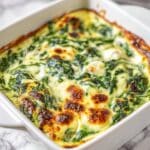 Yes, frozen spinach works just fine! Just make sure to thaw and squeeze out any excess water before layering it in the casserole so it doesn’t make the dish watery.