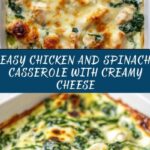 This Chicken and Spinach Casserole with Cream Cheese is a creamy, comforting baked dish featuring tender seared chicken breasts layered over fresh spinach and topped with a rich cream cheese and sour cream mixture. Finished with a generous sprinkle of mozzarella cheese, this casserole bakes to golden perfection, making it an ideal hearty meal perfect for family dinners or meal prep.