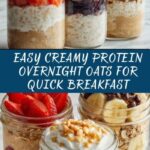 A creamy, protein-packed overnight oats recipe perfect for a nutritious and convenient breakfast. This recipe combines rolled oats, protein powder, chia seeds, milk, and Greek yogurt, creating a creamy texture and a balanced meal ready to grab and go.