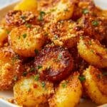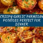 These Crispy Garlic Parmesan Crusted Potatoes are a perfect savory side dish, featuring tender baby potatoes coated in a flavorful blend of butter, garlic, and Italian seasoning, then baked to golden perfection on a crispy Parmesan cheese crust. Garnished with fresh parsley, they are irresistibly crunchy on the outside and soft on the inside.