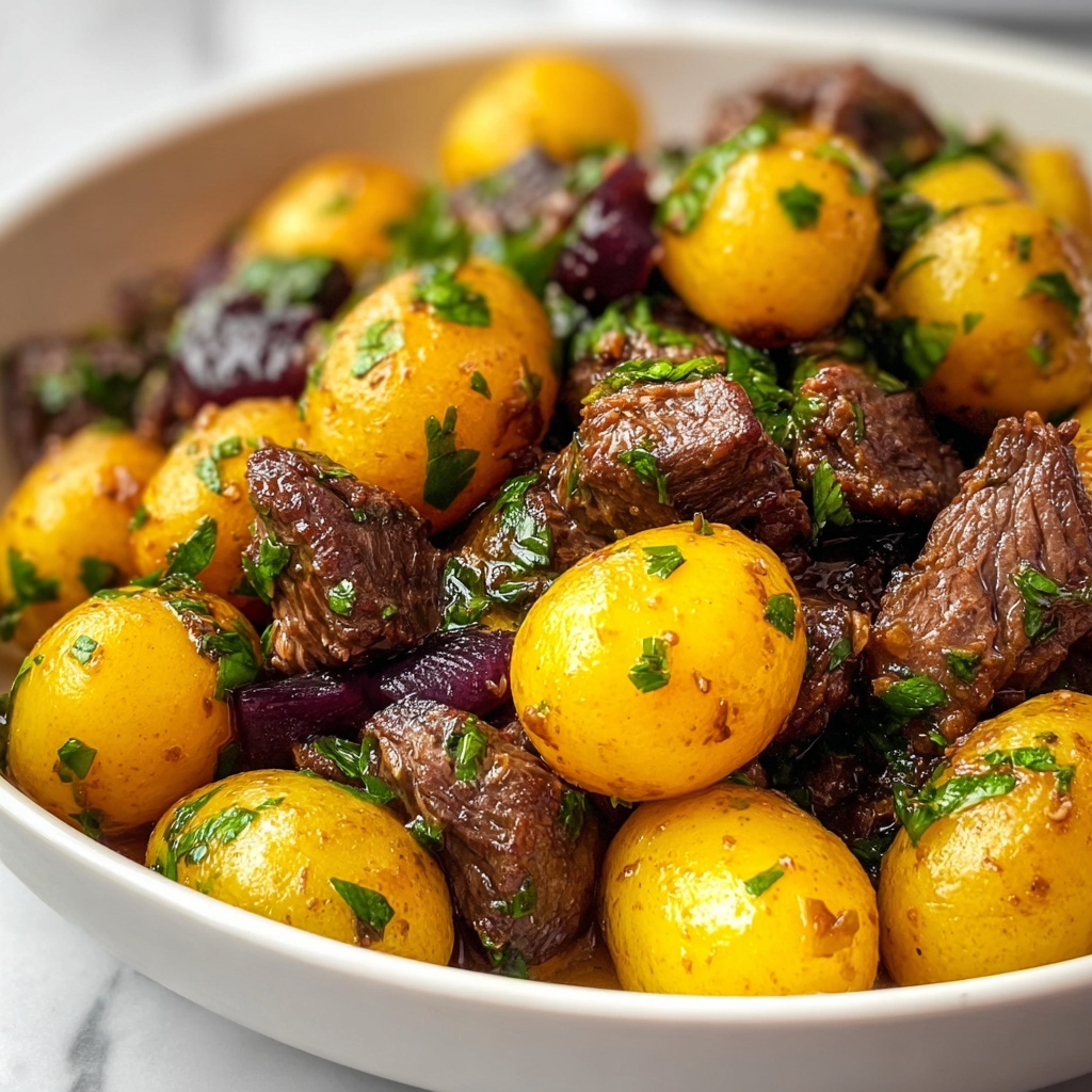 Absolutely! While baby potatoes are ideal because they cook evenly and hold their shape, you can swap in red or Yukon Gold potatoes for slightly different texture and flavor. Just be mindful to cut them into uniform pieces so they cook at the same rate as the beef.