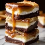 Elevate your Decadent Caramel Cheesecake Bars Recipe with simple yet stunning garnishes. A light sprinkle of flaky sea salt brings out the richness of the caramel. For an extra touch, dusting them with cocoa powder or powdered sugar adds a delicate sweetness and pretty presentation. You can also drizzle a little more caramel on top just before serving for the wow factor.