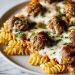 This Dump and Bake Meatball Casserole is a simple, one-dish meal perfect for busy weeknights. Combining uncooked rotini pasta, frozen precooked meatballs, pasta sauce, and water all in one pan, it bakes in the oven to create a hearty, cheesy casserole with minimal prep and cleanup. Topped with mozzarella and optional Parmesan or parsley garnish, it’s a comforting, crowd-pleasing dinner ready in just 45 minutes.