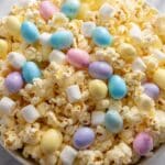 This Easter Candy Popcorn recipe combines the perfect balance of sweet and salty flavors, creating a festive and fun treat for spring celebrations. Featuring fluffy popped popcorn coated in melted butter and gooey marshmallows, then mixed with colorful Bunny Mix M&M’s and Hershey’s milk chocolate candy-coated eggs, this snack is easy to make and loved by kids and adults alike.