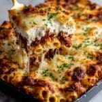 This easy baked ziti is a comforting, crowd-pleasing pasta casserole layered with tender noodles, hearty meat sauce, and plenty of gooey melted cheese. It’s the perfect make-ahead meal for busy weeknights, potlucks, or cozy family dinners, and it delivers all the flavor of lasagna with half the effort.