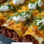This Easy Cheesy Ground Beef Enchiladas recipe offers a delicious and satisfying Mexican-inspired main course featuring seasoned ground beef, melted Mexican blend cheese, and flavorful enchilada sauce wrapped in warm tortillas. Perfect for a comforting weeknight dinner or a festive gathering, these enchiladas are quick to prepare, customizable, and bake to bubbly cheesy perfection.