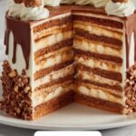 This decadent Ferrero Rocher Cake combines moist hazelnut and cocoa-flavored layers with a rich Nutella buttercream, decorated with crunchy crushed wafers and hazelnuts. Perfect for special occasions or chocolate lovers, it delivers a delightful blend of textures and flavors inspired by the famous Ferrero Rocher chocolates.