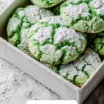 These Festive Green Sugar Cookies are easy-to-make, vibrant treats perfect for holiday celebrations. Made from a simple white cake mix dough tinted with green gel food coloring and coated in a sparkling blend of granulated and powdered sugar, these cookies bake up soft with a slight crisp on the edges, creating a delightful crackled appearance.