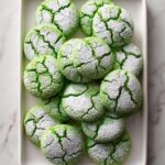 These Festive Green Sugar Cookies are easy-to-make, vibrant treats perfect for holiday celebrations. Made from a simple white cake mix dough tinted with green gel food coloring and coated in a sparkling blend of granulated and powdered sugar, these cookies bake up soft with a slight crisp on the edges, creating a delightful crackled appearance.