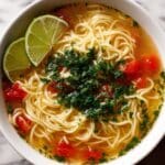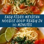 Fideo Mexican Noodle Soup is a comforting and flavorful traditional Mexican dish made by toasting thin vermicelli pasta and simmering it in a savory broth with onions, garlic, and tomatoes. This easy-to-make soup is garnished with fresh cilantro, lime, and optional toppings like avocado and queso fresco for a deliciously satisfying meal in just 30 minutes.