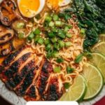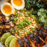 This Fiery Chicken Ramen is a flavorful and comforting dish featuring tender shredded chicken, spicy broth, fresh vegetables, and perfectly cooked ramen noodles. Enhanced with aromatic spices, chili paste, and savory sauces, this recipe delivers a deliciously spicy twist on classic ramen, garnished with boiled eggs, sesame seeds, and fresh lime for an irresistible and warming meal.