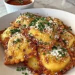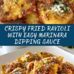 Crispy, golden-fried ravioli served with a flavorful marinara dipping sauce. This easy appetizer features breaded ravioli that are fried until perfectly crunchy, making them a delightful snack or party treat.