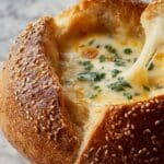 For a festive touch, you can shape your sourdough bowl by scoring decorative patterns on its crust before baking. Alternatively, serve smaller individual portions by hollowing out mini round loaves and following the same method—perfect for intimate gatherings or fancy hors d’oeuvres.
