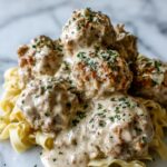 This Garlic Butter Chicken Balls with Creamy Parmesan Pasta recipe combines tender, flavorful chicken meatballs cooked in a rich garlic butter sauce, served alongside a luscious creamy Parmesan pasta. Perfect for a comforting weeknight dinner, it balances savory garlic notes with the smooth creaminess of Parmesan and heavy cream, topped with fresh parsley and a hint of lemon for brightness.