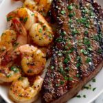 A delicious and easy-to-make Garlic Butter Grilled Steak & Shrimp recipe featuring juicy ribeye or sirloin steaks and succulent shrimp, all grilled to perfection and topped with a flavorful garlic butter sauce. Perfect for a quick 20-minute meal that combines smoky, savory, and fresh flavors.