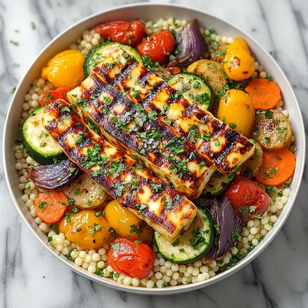 Try serving the Griddled Vegetables and Halloumi with Couscous Recipe in a large sharing platter for a family-style meal. Layer the couscous bottom, vegetables in colorful sections, and halloumi on top, then garnish artistically with herbs and lemon slices. Another fun idea is to stuff grilled flatbreads or pitas with the warm salad and cheese for a handheld delight perfect for casual get-togethers.