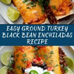 These Ground Turkey Black Bean Enchiladas are a flavorful and hearty Mexican-inspired dish featuring seasoned ground turkey, black beans, and corn wrapped in flour tortillas, topped with a rich enchilada sauce and melted Mexican blend cheese. Baked to perfection, this family-friendly meal offers a balanced blend of protein and vegetables, perfect for dinner.