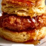 Crispy fried chicken cutlets nestled inside warm, flaky homemade biscuits, drizzled with a spicy-sweet hot honey sauce. This easy-to-make recipe combines tender buttermilk-marinated chicken, fluffy biscuits baked to golden perfection, and a vibrant hot honey drizzle for the perfect balance of flavors and textures in a comforting Southern-inspired sandwich.