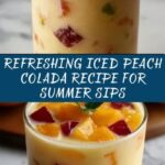 This refreshing Iced Peach Colada is a tropical blend of frozen peaches, creamy coconut, and pineapple juice, perfectly balanced with rum and a touch of sweetness. Served chilled and garnished with fresh peach slices and mint, it’s an ideal summer cocktail or a delightful non-alcoholic treat.