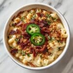 - Serve: Remove from oven, optionally garnish with additional bacon crumbles and sliced jalapeños for extra heat and flavor, and serve hot for a comforting, spicy mac and cheese experience.