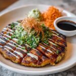 Once your pancakes are cooked, transfer them to a plate and get ready for the fun part — garnishing. Drizzle okonomiyaki sauce and creamy mayonnaise over the top, then sprinkle with optional bonito flakes and dried seaweed if you like. These garnishes not only add flavor but bring the whole dish to life visually and texturally.