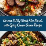Korean BBQ Steak Rice Bowls with Spicy Cream Sauce Recipe