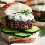 These Lamb Sliders with Dill Greek Yogurt are a flavorful Mediterranean-inspired appetizer featuring juicy ground lamb patties seasoned with rosemary and oregano, topped with tangy dill-infused Greek yogurt and fresh cucumber slices, all nestled inside mini pitas. Perfect for parties or a light meal, they combine savory and fresh flavors with a crispy skillet sear.