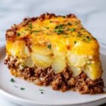 This Loaded Potato and Meatloaf Casserole combines the hearty flavors of classic meatloaf with creamy mashed potatoes, cheddar cheese, and crispy bacon. It’s an all-in-one comfort food perfect for family dinners, delivering a satisfying blend of savory meat, rich cheese, and flavorful potatoes baked into a delicious casserole.