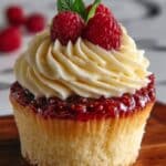 Divide the cheesecake batter evenly among the cooled muffin cups, filling each about three-quarters full. Dollop a spoonful of the raspberry sauce onto the top of each, then use a toothpick to create pretty swirls by gently dragging it through the batter. Bake for 18 to 20 minutes until the centers are set but still slightly jiggly—this guarantees creamy, tender cheesecake cups every time. Let them cool in the pan for 10 minutes before transferring to a wire rack to chill completely.