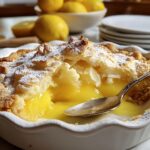 A delightful and easy-to-make Magic Lemon Cobbler featuring a fluffy lemon-infused batter baked to golden perfection. This tangy and sweet dessert is perfect for any occasion, serving nine people with a lovely balance of citrus flavor and sweet crumb topped optionally with powdered sugar.
