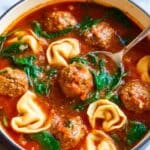 For a fun twist, serve the soup in mini bread bowls for a whimsical, edible container. Or try layering it in clear mugs at a casual gathering to show off the colorful tortellini, meatballs, and vibrant spinach—it’s as beautiful as it is delicious!