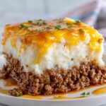 You really can’t go wrong with the Meatloaf with Mashed Potatoes and Cheddar Cheese Recipe — it’s the kind of dish that feels like home in every bite. Its comforting layers of savory meat, smooth potatoes, and melted cheese come together to create a truly satisfying meal. I hope you enjoy making and sharing this recipe as much as I do; it’s an absolute crowd-pleaser that warms hearts and fills bellies.