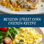 This Mexican Street Corn Chicken recipe combines tender baked chicken breasts topped with a creamy and flavorful street corn mixture, garnished with queso fresco and fresh cilantro for a delicious and easy-to-make meal perfect for any occasion.