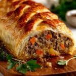 You can freeze the assembled but unbaked Minced Beef Wellington by wrapping it securely in cling film followed by foil. It will keep for up to one month. When ready to cook, bake straight from frozen—just add extra baking time to ensure it’s cooked through and golden.